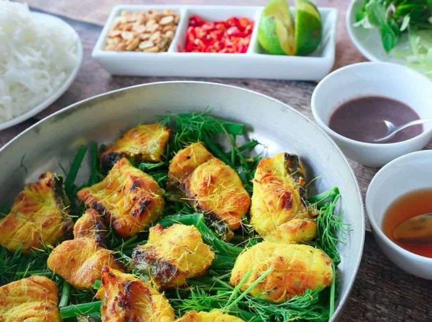 For a truly unique culinary experience, Cha Ca is a must. This dish features white fish marinated in turmeric and spices, grilled tableside, and served with fresh dill, spring onions, vermicelli, peanuts, and a fermented shrimp paste or fish sauce. It’s a specialty of Hanoi and rarely found in other regions.
