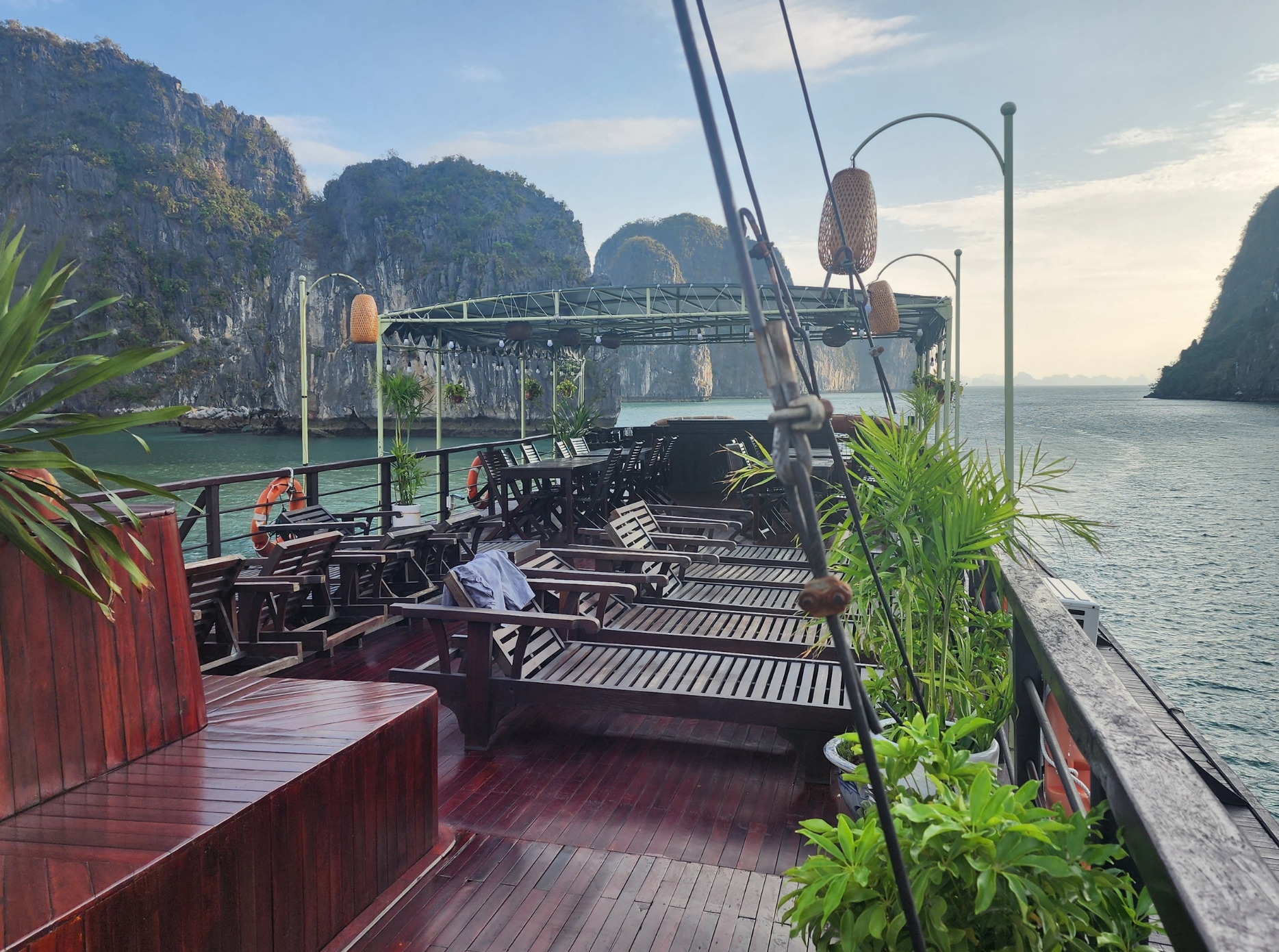 Sunset party on the sundeck, followed by a Vietnamese dinner and evening squid fishing.