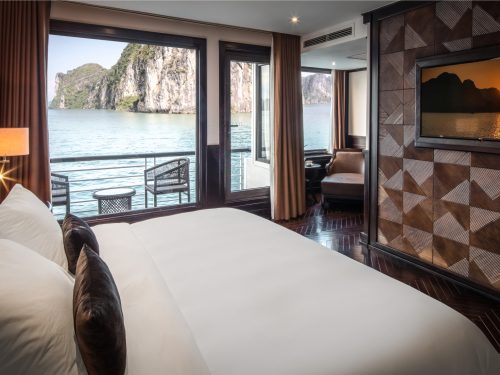 The Junior Suites are located on the first deck with full length of crystal-clear glass windows and large private balcony where you enjoy the morning and afternoon sun brightening while taking fresh air of the world heritage site.