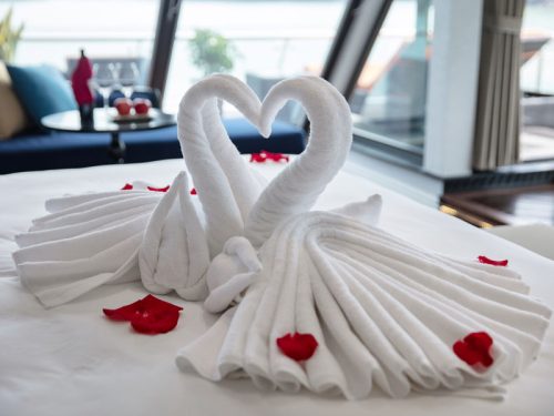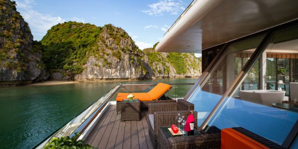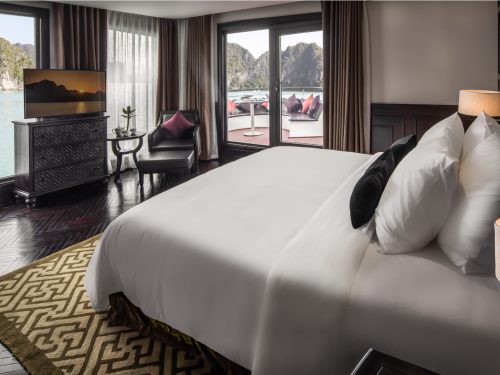 Situated on the third decks with panoramic views of the world heritage from floor-to-ceiling windows. The suite is equipped with high-class interior, the largest one at the size of 60 square meters with a large private sun terrace.