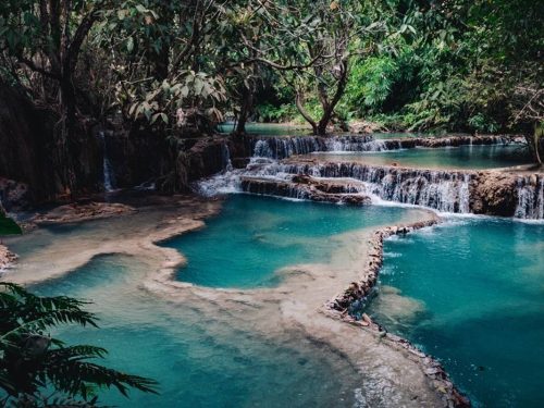 At around 08:00–08:30, begin your day with a scenic drive to Kuang Si Waterfall, passing through lush rice paddies and countryside. Visit the Bear Rescue Center, then marvel at the turquoise pools and cascading falls. On the return journey, stop at Ban Na Uan, a Hmong ethnic village, and observe their daily life and traditional embroidery.