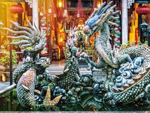 Walking around the old town, watching colorful lanterns. Visitors are free to visit and shop