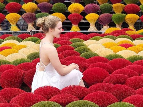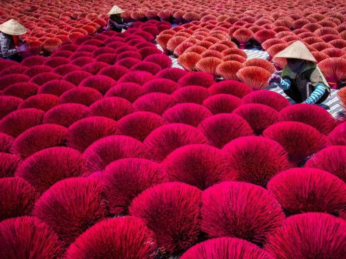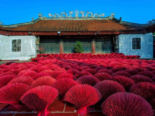 Morning: Visit Quang Phu Cau. Arrive at the village of Quang Phu Cau. Begin your walking tour around the village, guided by your knowledgeable tour guide. The guide will take you to various locations within the village where you can witness the process of making incense. Take photos there.