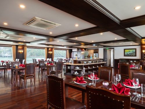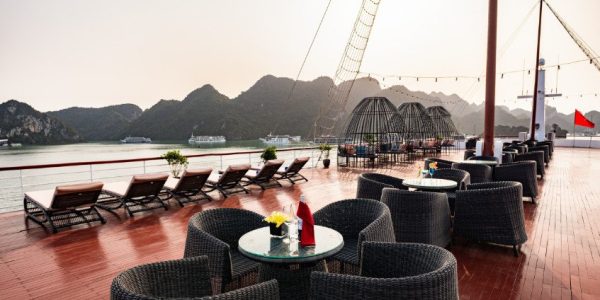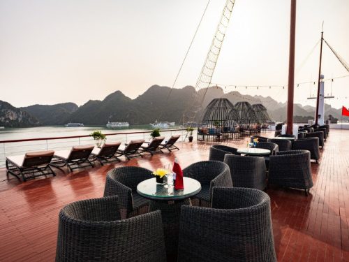 17:00: Free time to relax on the cruise. Don’t miss the sundeck area to catch the sunset, enjoy the sunset party and take part in a cooking class of authentic Vietnamese dishes.