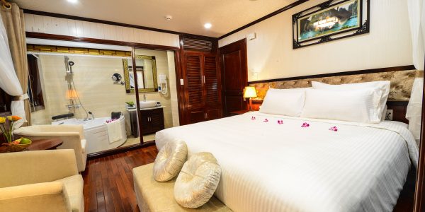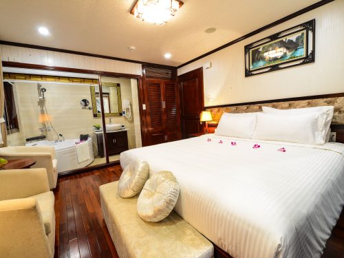 - Luxury Onboard Experience: Relax in comfort with modern facilities onboard the Bai Tu Long Bay Swan Cruises vessel. Our cabins are elegantly designed to provide the perfect setting for a restful night at sea.
