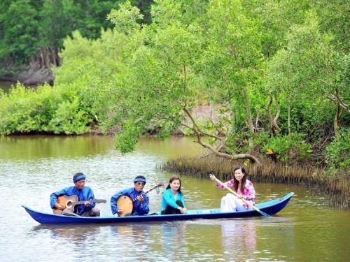 - Listen to traditional folk music and ride in a sampan under coconut trees.