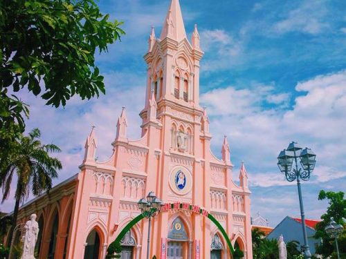 Take a stroll through history at the Chicken Church (Da Nang Cathedral), a French colonial building with distinct pink architecture and a bell tower visible throughout the city.