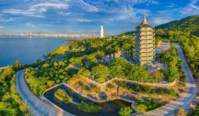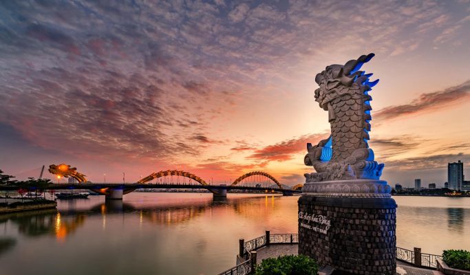 Visit Museum of Cham Sculpture, Love Bridge, Son Tra Peninsula, Linh Ung Pagoda, Statue of Carp Becoming a Dragon at DHC Marina (pass by), My Khe Beach, Han Market