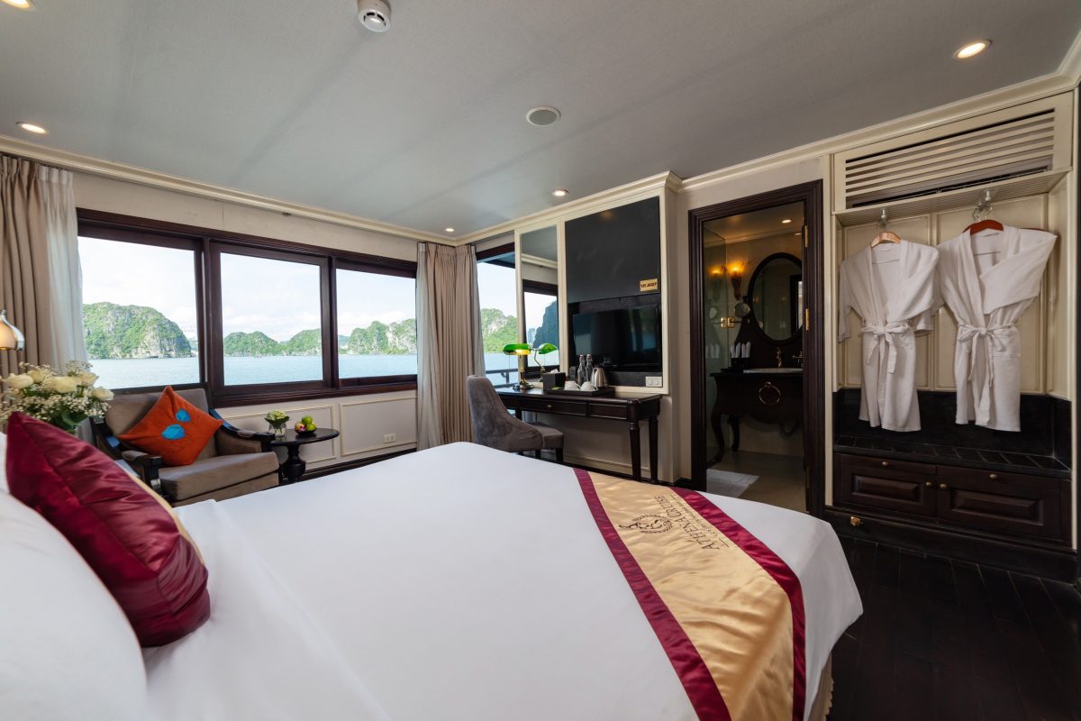 Athena Luxury Cruise is the perfect choice for travelers looking for an exceptional Halong Bay 5-Star Cruise. This Halong Bay 5-Star Cruise features 22 elegant cabins with private balconies, offering the best way to experience Halong Bay, a UNESCO World Heritage Site and one of the New Seven Natural Wonders of the World. As one of the most recommended Halong Bay 5-Star Cruise options, Athena Luxury combines comfort, style, and professional service to ensure every journey on this Halong Bay 5-Star Cruise is unforgettable.