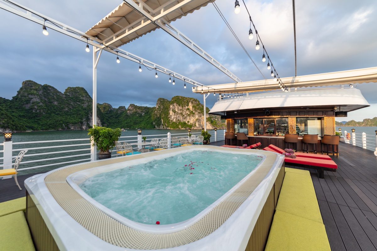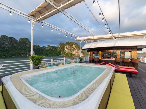 17:00: Back to the main cruise, it’s the best time for doing whatever you want. Relaxing at the outdoor jacuzzi, sunbathe on the sundeck, experience a spa treatment…The cruise moves to the overnight place – (Titop587).