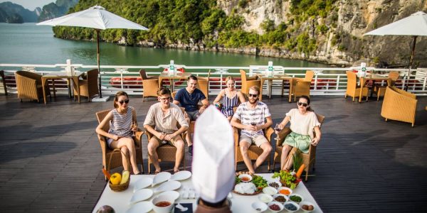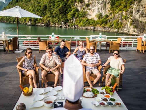 - Join a sunset party and Vietnamese cooking demo on the cruise deck