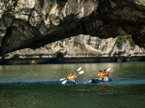 - Kayak through the natural lagoons of Lan Ha Bay, surrounded by dramatic limestone cliffs