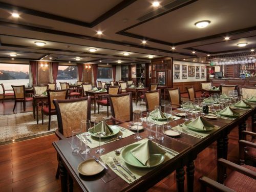 12:30 Board the Heritage Cruises boat and enjoy a welcome drink as you receive a cruise briefing, safety instructions, and check-in to your suite. Lunch is served at L’indochine Restaurant.