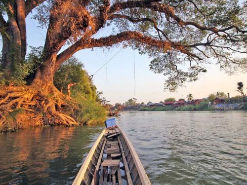 In the afternoon, we embark the motor boat again to visit Cambodian border where the famous Irrawaddy dolphins live. If you are lucky, you can see them playing and swim on the river.