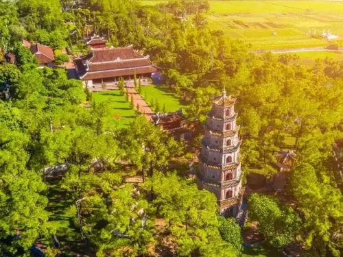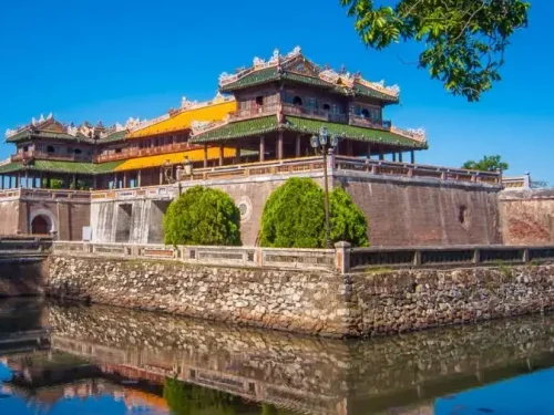 The next destination is Hue, the Old Royal City in Vietnam in 17th century. Upon leaving Hoi An, we drive north to Hue. The scenic road is hugging the coastline before crossing over the winding Hai Van pass. A view from the top of the pass is one of Vietnam’s most impressive panoramic scenes. We stop en route to visit the Lang Co beach before reaching Hue city. As Vietnam’s last feudal capital, the small and quiet city of Hue is widely known for magnificent architectures, pagodas and royal tombs laid in many small villages and surrounding hills. We spend this afternoon to visit Hue with the massive citadel, which contains the Imperial City and the Purple Forbidden City. This royal residence was all but destroyed during the 1968 Tet Offensive, however it is still fascinating to walk among the ruins. Overnight in Hue hotels.