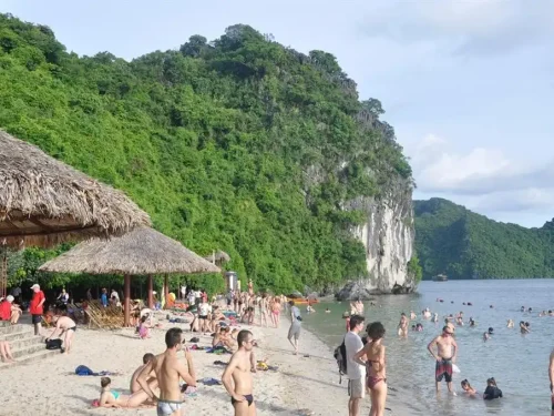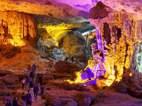 08: 00am: Transfer to Halong city for boat cruise on the Bay, stop on route to admire the landscape picture, you might take picture of buffalo boys. Embark on Junk, boat crew will greet you with special seafood lunch while boat cruise around the bay to visit Dinh Huong island, Ga Choi island, Dog island, Sail island, visit Sung Sot cave and a swim at Titov beach before finishes at harbor for transfer back to Hanoi.