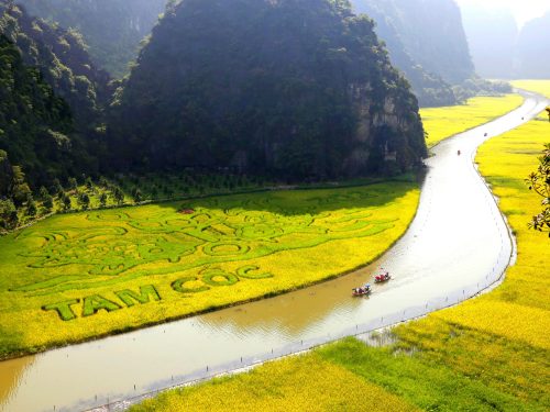 Start early and leave the city behind as you head to Ninh Binh, often called “Halong Bay on land.” Your first stop is Hoa Lu, Vietnam’s ancient capital, where you’ll explore centuries-old temples and remnants of royal dynasties.