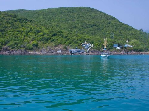Between 3:45 PM and 4:45 PM, you will visit Mieu Island and the Tri Nguyen Aquarium. The vessel will dock at Mieu Island, where you can explore the mysterious Tri Nguyen Aquarium designed to resemble a stranded pirate ship on a reef. Inside the ship, you will find various unique species of coral and marine life. Outside the ship, there is the Lo Thien Aquarium where you can purchase food to attract turtles and fish.