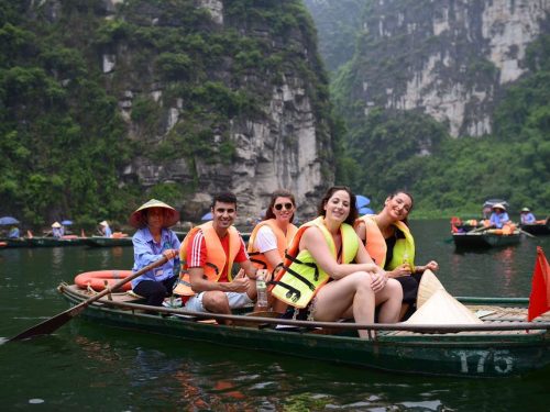 AM : 8:00 – 8:30. Our guide & driver will pick you up at your hotel in Hanoi Old Quarter, then leave by coach to Hoa Lu (2.5 hrs). Visit the historic capital of Vietnam and the famous ancient temples of Le and the Dinh Dynasties. Then our bus will transfer you from Hoa Lu to Tam Coc for lunch around at 12:30PM.