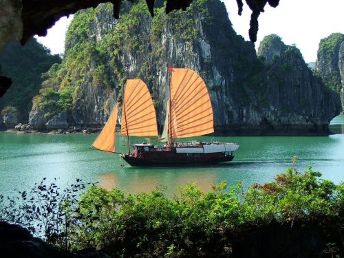Note: Transfer Hanoi – Halong Bay – Hanoi by cruise shuttle bus. Your morning departure from your hotel in Hanoi to Halong Bay takes you on a journey through the rich farmlands of the Red River Delta. Observe everyday life of Vietnamese Villages as you see the villagers work the local rice fields, take live pigs to market on bicycles and plough the fields with their large water buffaloes. Arrive in Halong and board a traditional sailing junk. As the vessel sets sails, you will be greeted by the Crew Team who will aim throughout your stay at providing you with the highest standards of service for a pure pleasure and utmost comfort onboard. Discover some of the treasures disseminated across the Bay of the Descending Dragon during the afternoon: fascinating caves, pristine beaches, picturesque floating villages, fantastic rock formations rising up out of emerald water. While onboard, you can take advantage at leisure of the cruise services; surrounded by a stunning setting in motion, you could attend our chef’s cooking demonstration and try your skills in the art of traditional Vietnamese cooking. Defined to be one of the highlights of your stay, a highly refined, innovative and varied cuisine will be presented for Lunch and Dinner in the elegant dining-room, accompanied by a wide selection of wines and beverages (with extra charge applied) for drink). In the evening enjoy the entertainment activities as movie night, squid fishing or just enjoying a cocktail surrounded by limestone rocks majestically springing out from silent waters in the night. Stay overnight in a cruise in Halong – Halong Royal Lengend Cruise or similar