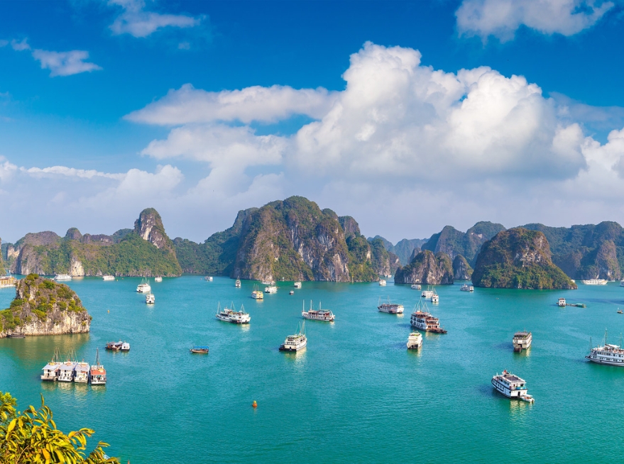 Day 1–3: Arrive in Hanoi (Vietnam), explore Old Quarter, visit Ho Chi Minh Mausoleum, day trip to Ha Long Bay