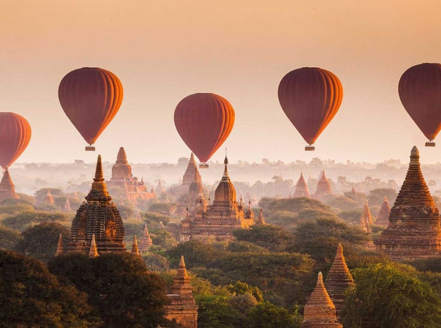 Day 13–14: Yangon and Bagan (Myanmar), Shwedagon Pagoda, hot air balloon over temples