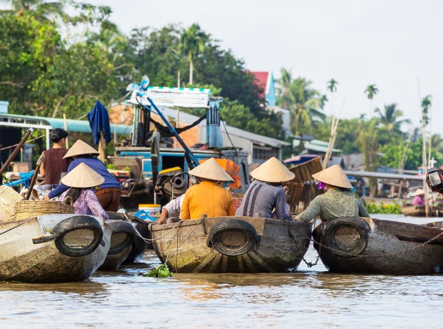 Spend a day cruising through the lush Mekong Delta, visiting floating markets and fruit orchards. Return to Ho Chi Minh City for your departure or add an optional beach extension in Phu Quoc or Nha Trang.