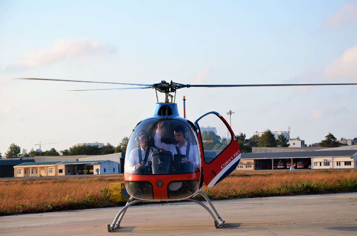 The helicopter can accommodate one passenger per flight, with the pilot serving not only as an operator but also as a tour guide. During the journey, the helicopter flies over famous landmarks in Vung Tau, such as the Christ Statue Vung Tau, Vung Tau Lighthouse, Front Beach, Back Beach, Big Mountain, Small Mountain, and more.