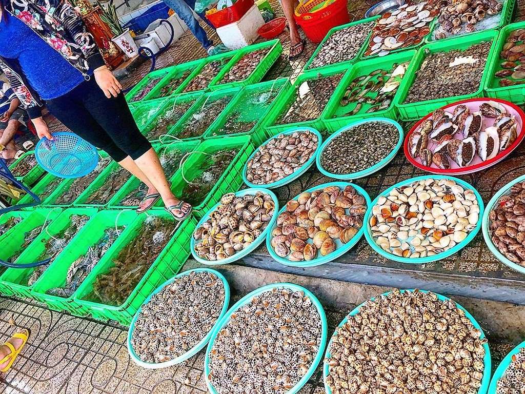 Located near Beachfront Park, at the intersection of Phan Boi Chau and Nguyen Cong Tru streets, the market operates throughout the day. However, the seafood is at its freshest around 3-4 in the afternoon, as this is when the fishermen return from the sea with their catch.
