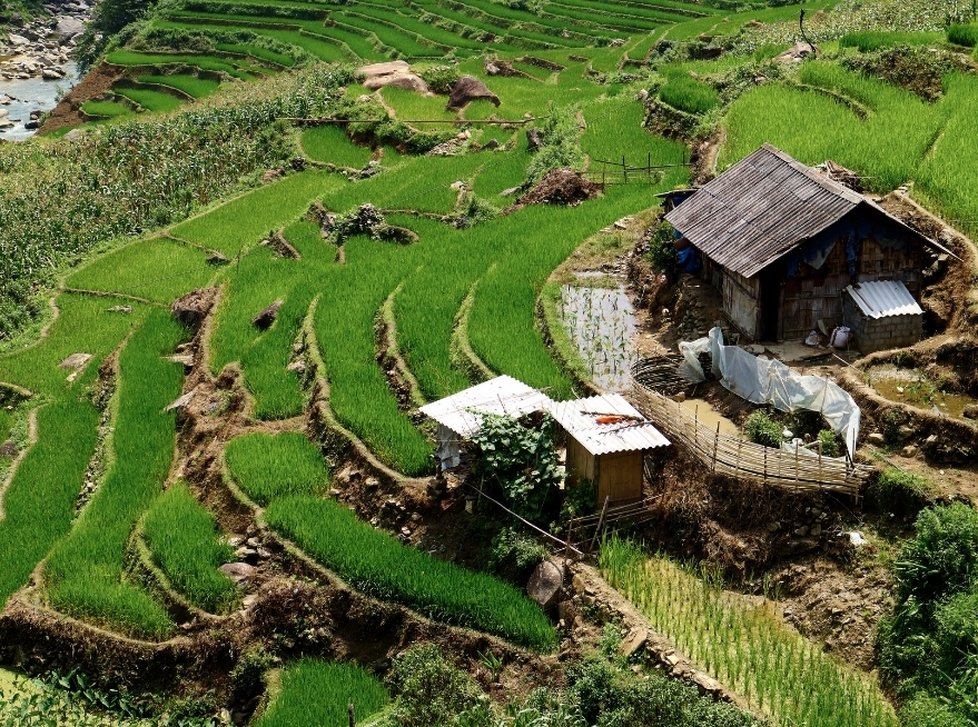Walk through terraced rice fields with Hmong or Dao minority guides in the north